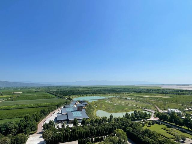 站在楼顶远眺西南方向,蜿蜒的黄河划分了陕西华山和山西中条山的界限,恰好听到旁边一位导游正在给游客介绍,传说最早“中华”的来历就源于这两座山,这种说法我还是第一次听说,感到很有趣。