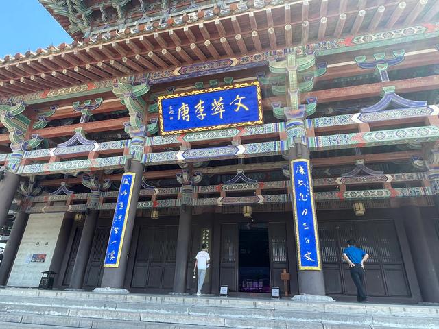 步入山门,首先是一道高阶映入眼帘,共有台阶108个。根据佛教的说法,人一生要经历108次磨难,诚心地登完这108个台阶便可以事事顺心。我们顶着烈日沿石阶而上,到了平台后便是飞檐翘角、气势雄伟的大钟楼。从这里开始,便走进了《西厢记》的故事。